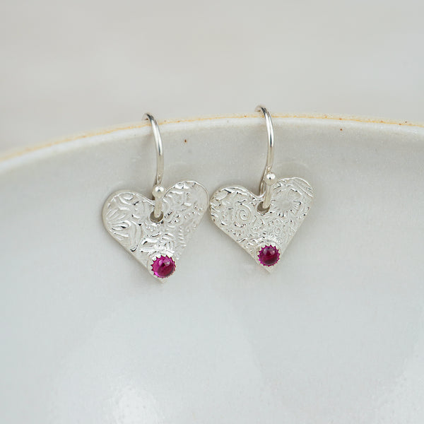 Sterling Silver Heart Charm Birthstone Earrings