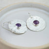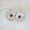 Handmade large sterling silver disc with real semi precious amethyst stone set in the middle.