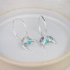 Handmade sterling silver moon and turquoise hoops.