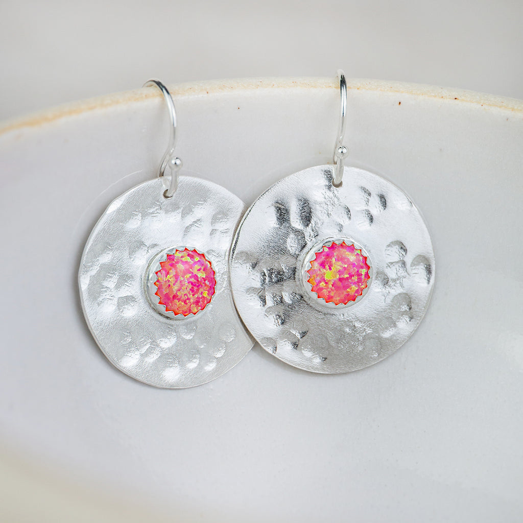 A good size earring, each sterling silver disc is approximately 25mm in size and each semi precious stone is approximately 8mm.