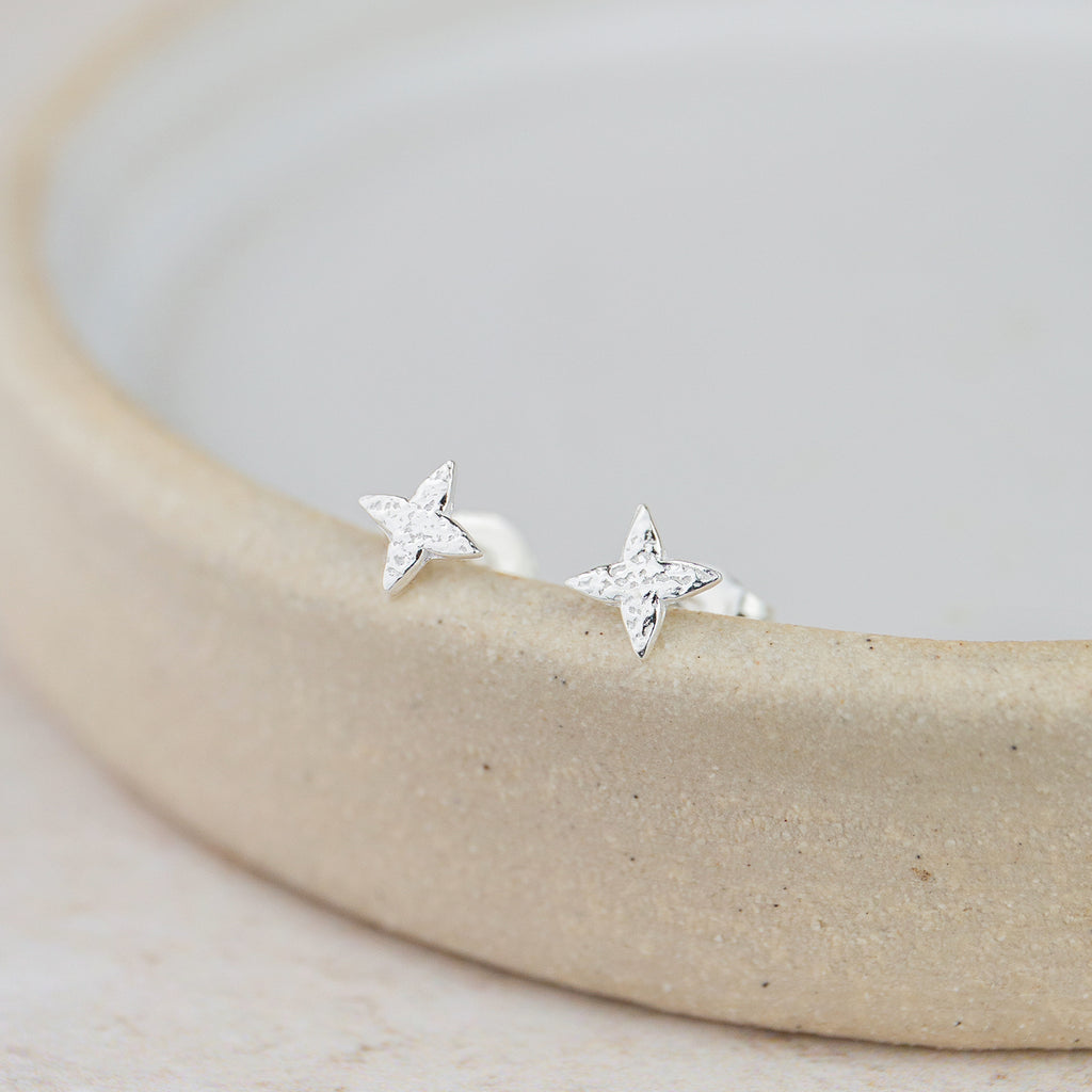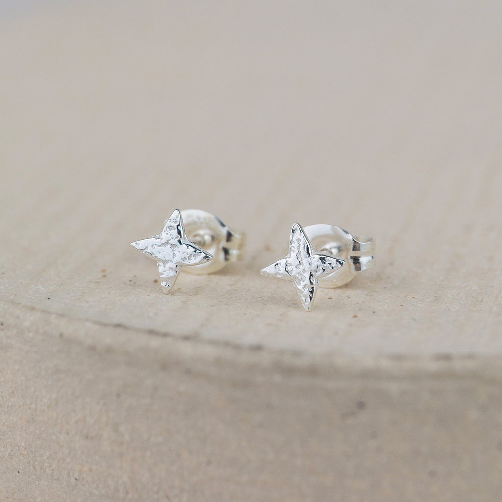 Handmade sterling silver mini North Star studs are hand cut and delicately textured and are perfect for everyday wear.