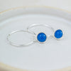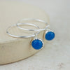 Handmade sterling silver hoops with a real semi precious Blue Agate set in a sterling silver bezel drop charm.