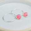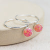 Handmade sterling silver hoops with a real semi precious Coral Opalite set in a sterling silver bezel drop charm.