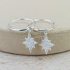 These lovely starburst hoops are approximately 15mm in diameter, and finished with a 15mm long sterling silver hanging starburst charm.