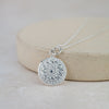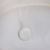 This stunning sterling silver small charm pendant is hand cut and has a delicate mandala texture to the front. It is approximately 15mm.
