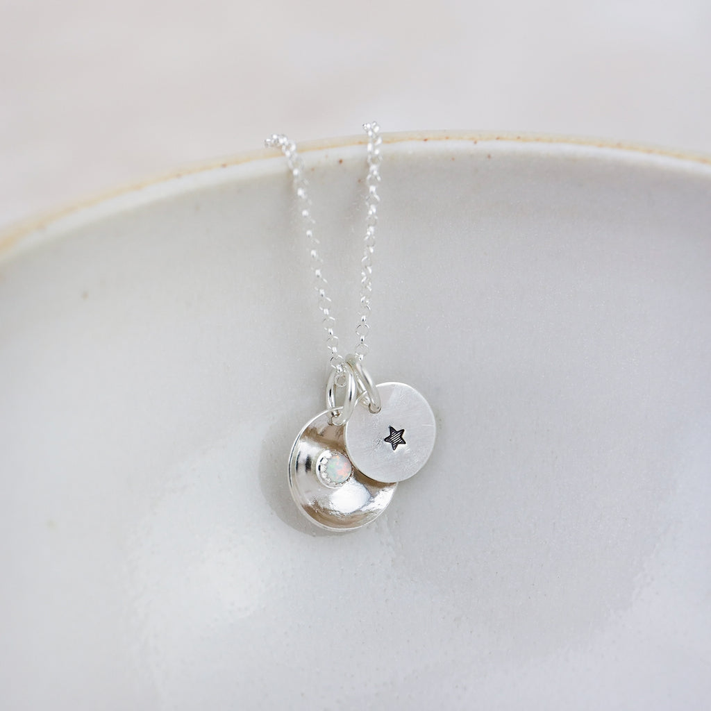 Each sterling silver pendant domed cup is approximately 12mm in diameter and comes with a sterling silver 9mm disc pendant with either a heart or star stamped to the front.