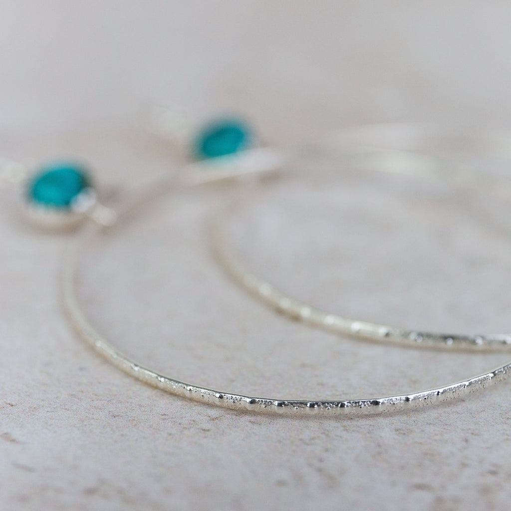 The sterling silver hoop is approx 40mm in diameter with an 8mm sterling silver bezel set real turquoise.