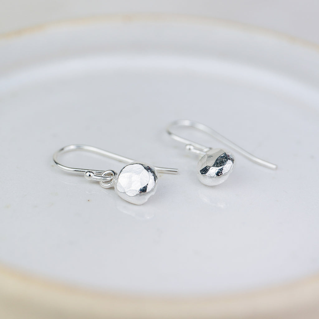 Each nugget is approximately 6mm - 8mm in size and hangs from a sterling silver ear wire. They are finished with a hammered texture to the front.
